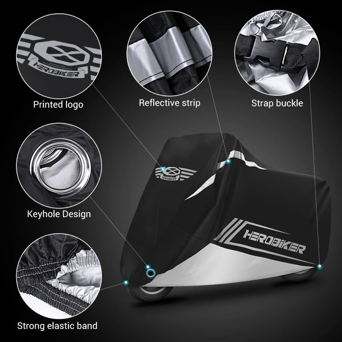 - Protects your motorbike from sun light, water, birds, trees, dust, and dirt