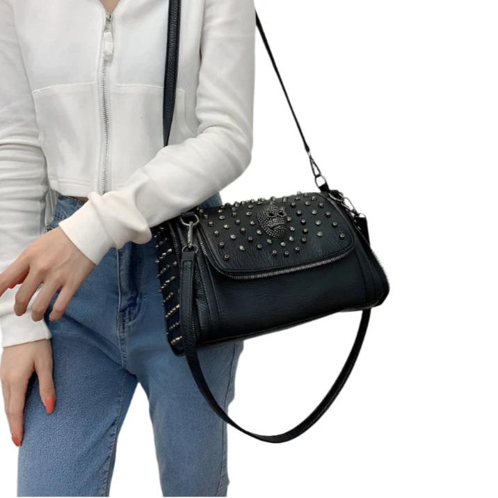 Dare to dominate with the ALR™ Sexy Rivet Shoulder Bag, a statement piece for women who live boldly and love fiercely. Blending luxury with a rebellious edge, this designer handbag is crafted for those who embrace the raw power of the punk-gothic aesthetic. The striking skull details, edgy rivets, and sleek finish make it a show-stopper—perfect for turning heads on and off the road.