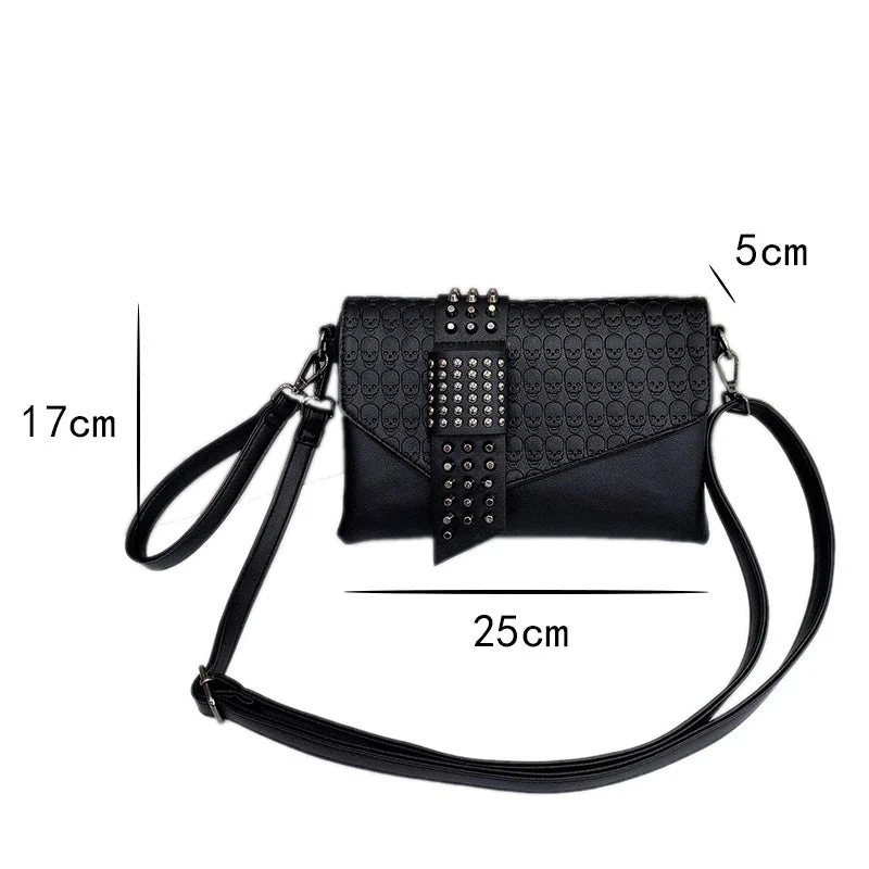 Unleash your bold side with the ALR™ Vintage Skull Printing Women’s Shoulder Bag, the ultimate accessory for women who live for freedom and fearless style. Crafted from premium black leather, this bag brings a punk-rock edge with skull graphics and rivet accents, making it the perfect match for your rebellious spirit. Compact yet functional, this small handbag is your go-to companion, whether you’re riding into the sunset or hitting the town.