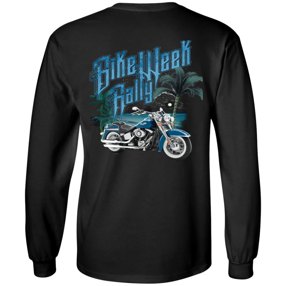 Check out this black long sleeve biker t-shirt with “Bike Week Rally” motorcycle graphics on the front. This long sleeve biker t-shirt has a double-needle neck, sleeves and hem made beautifully to bring out the most attractive biker long sleeve shirt.