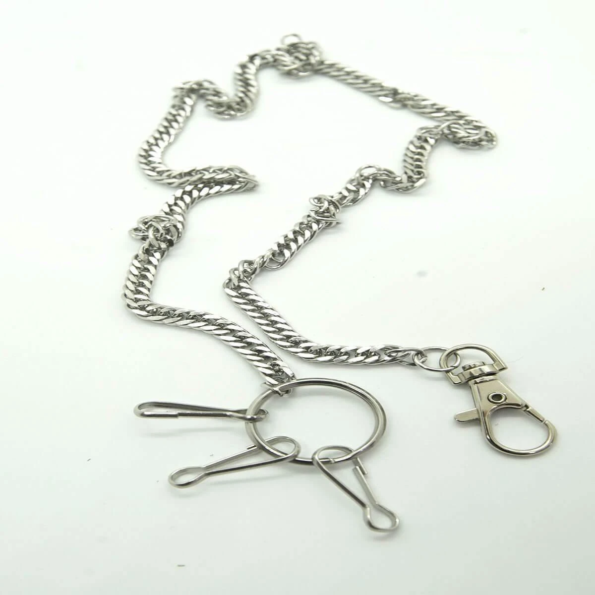 Made of high-quality rhodium-plated metal and zinc alloy, our Biker Long Chain offers you long-lasting durability and safety for your essentials. Styled with a strong clasp to hook onto a belt or jeans loop it will keep your belongings safe and secure. This keychain has three keyrings that allow you to hook your keys, wallet, or other personal objects. This high-quality Biker Long Chain is lightweight, durable for daily use, and gives you standout biker style.