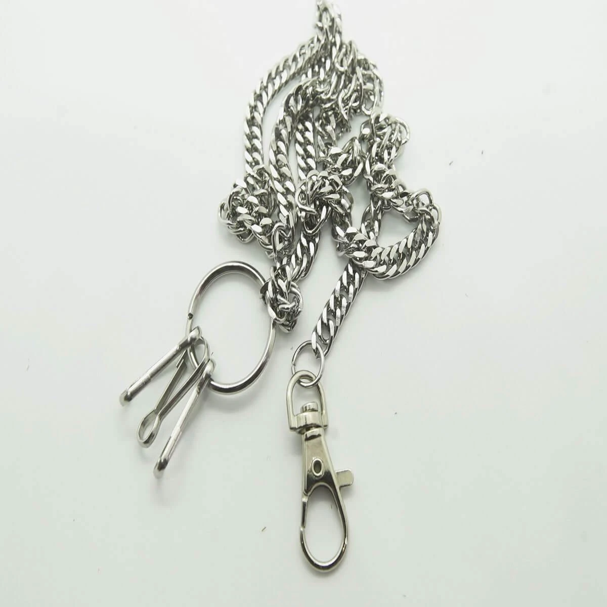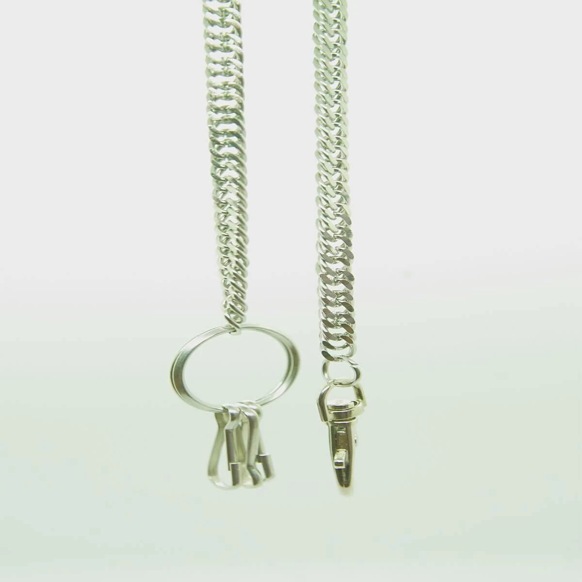 - Quality rhodium-plated metal link chain and zinc alloy clasps and key rings