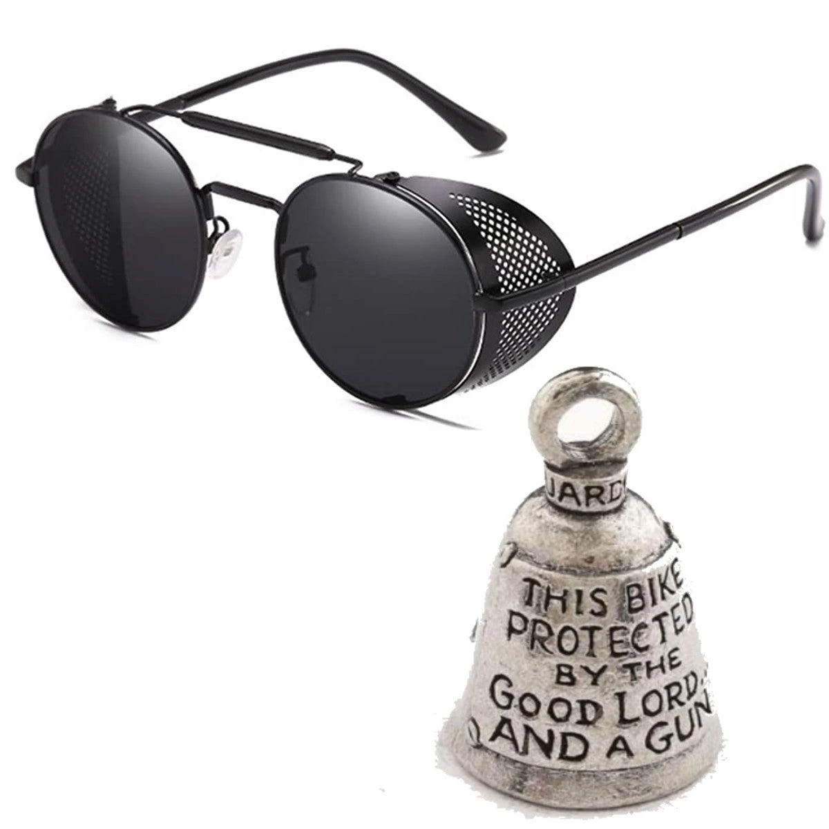 Stay protected and fashionable with these Bikers Retro Round Steampunk Sunglasses plus get a FREE Guardian Bell!