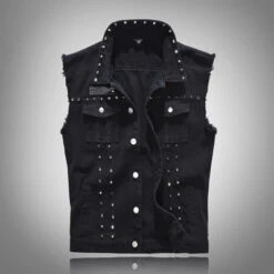 Alr™ Men’s Black Vintage Denim Vest With Rivet Details