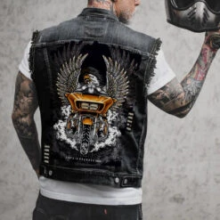 Alr™ Men’s Denim Biker Motorcycle Vest, Motorcycle Custom