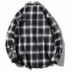 Men’s Plaid Button Down Flannel Shirt, White/Black Checkered
