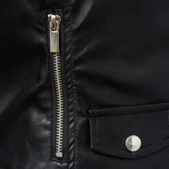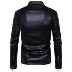 Turtleneck Motorcycle Black Faux Leather Jacket