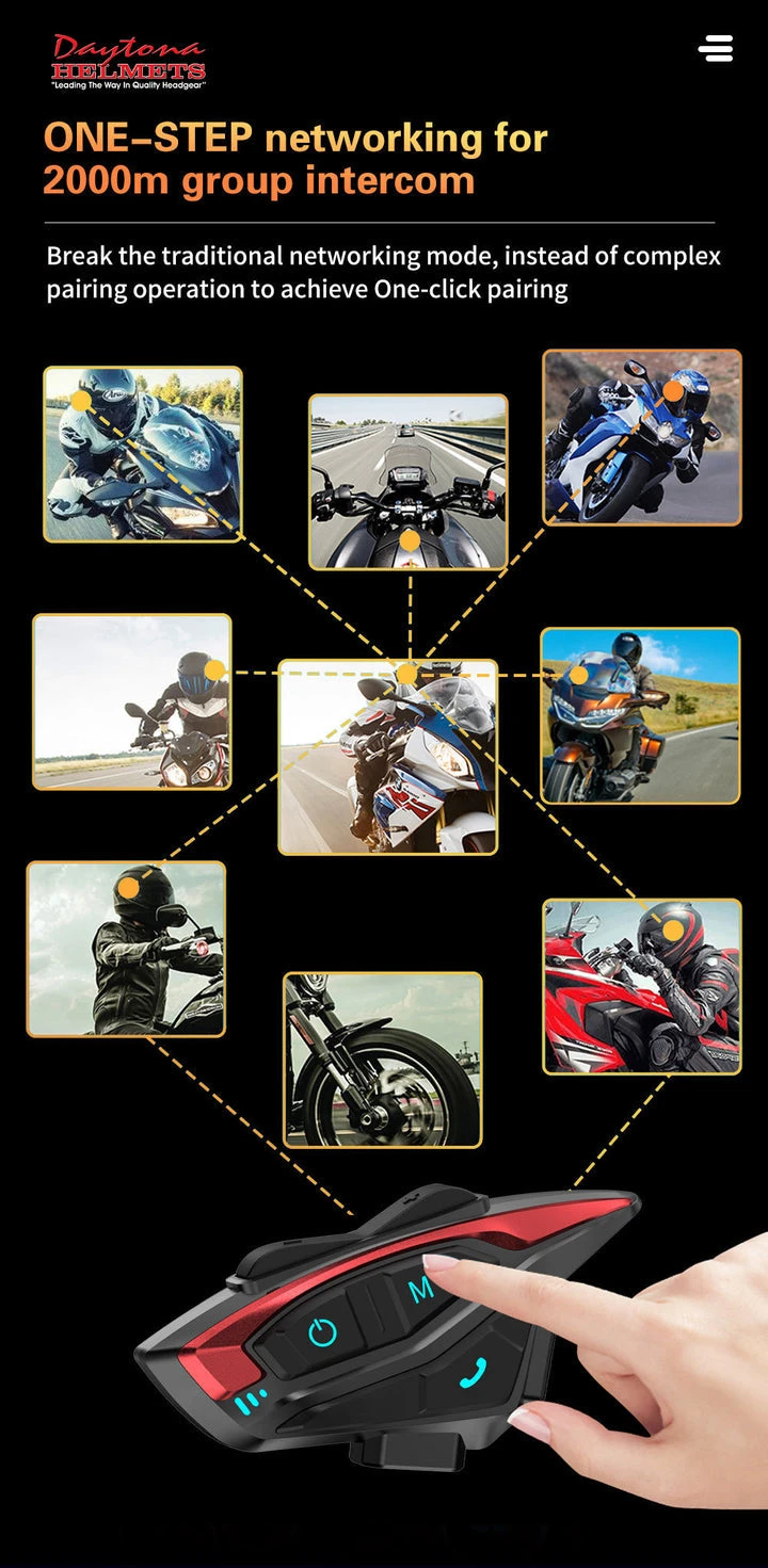 - One-Step Pairing, 1.2 Miles (2km) Distance Group Intercom.