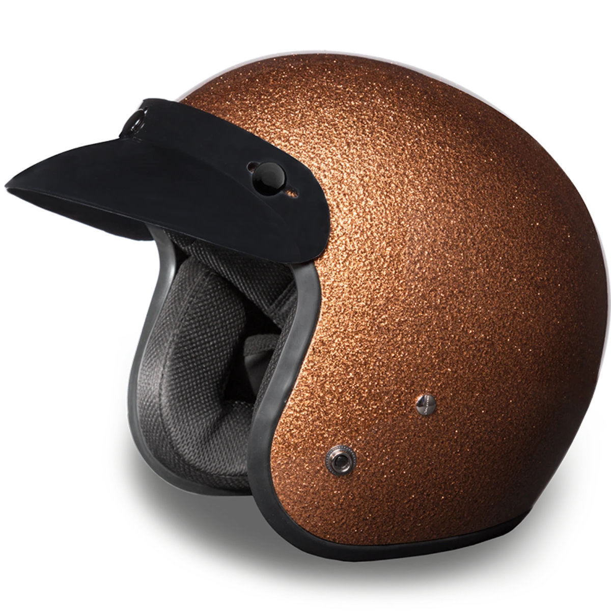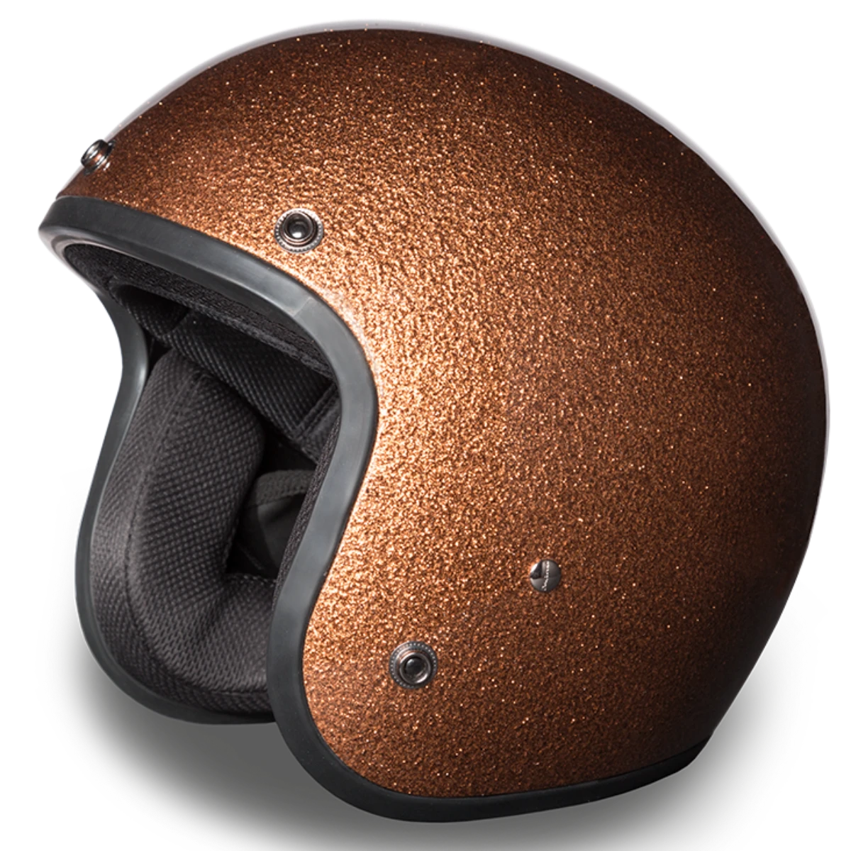 This D.O.T cruiser helmet features a gorgeous root beer metal flake accent that adds to its elegance and style. You will feel comfortable and cozy in this helmet even on hot days, thanks to the moisture-wicking fabric that maintains optimum riding conditions.