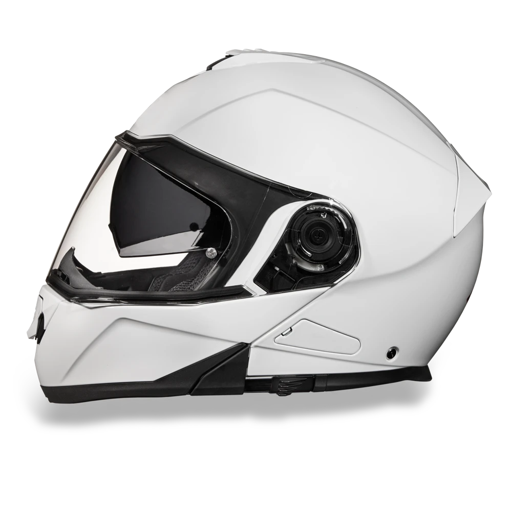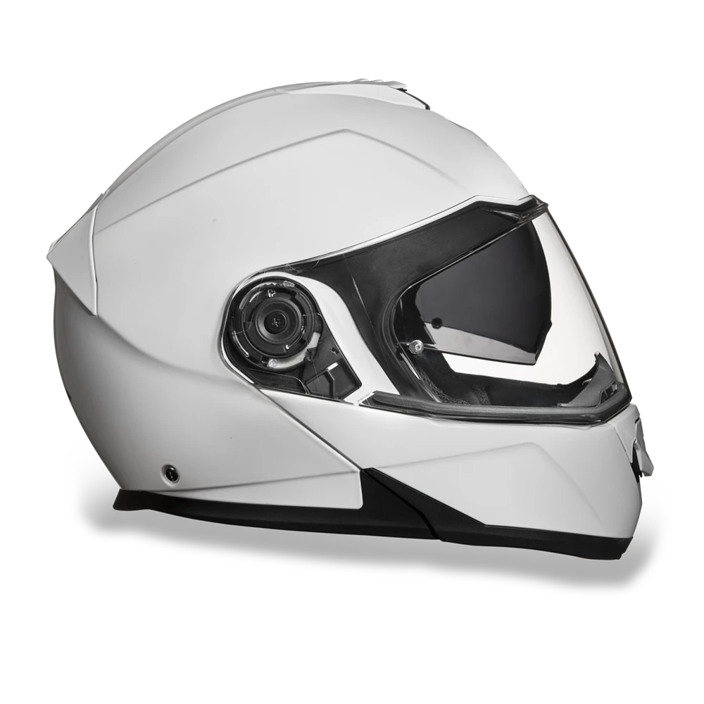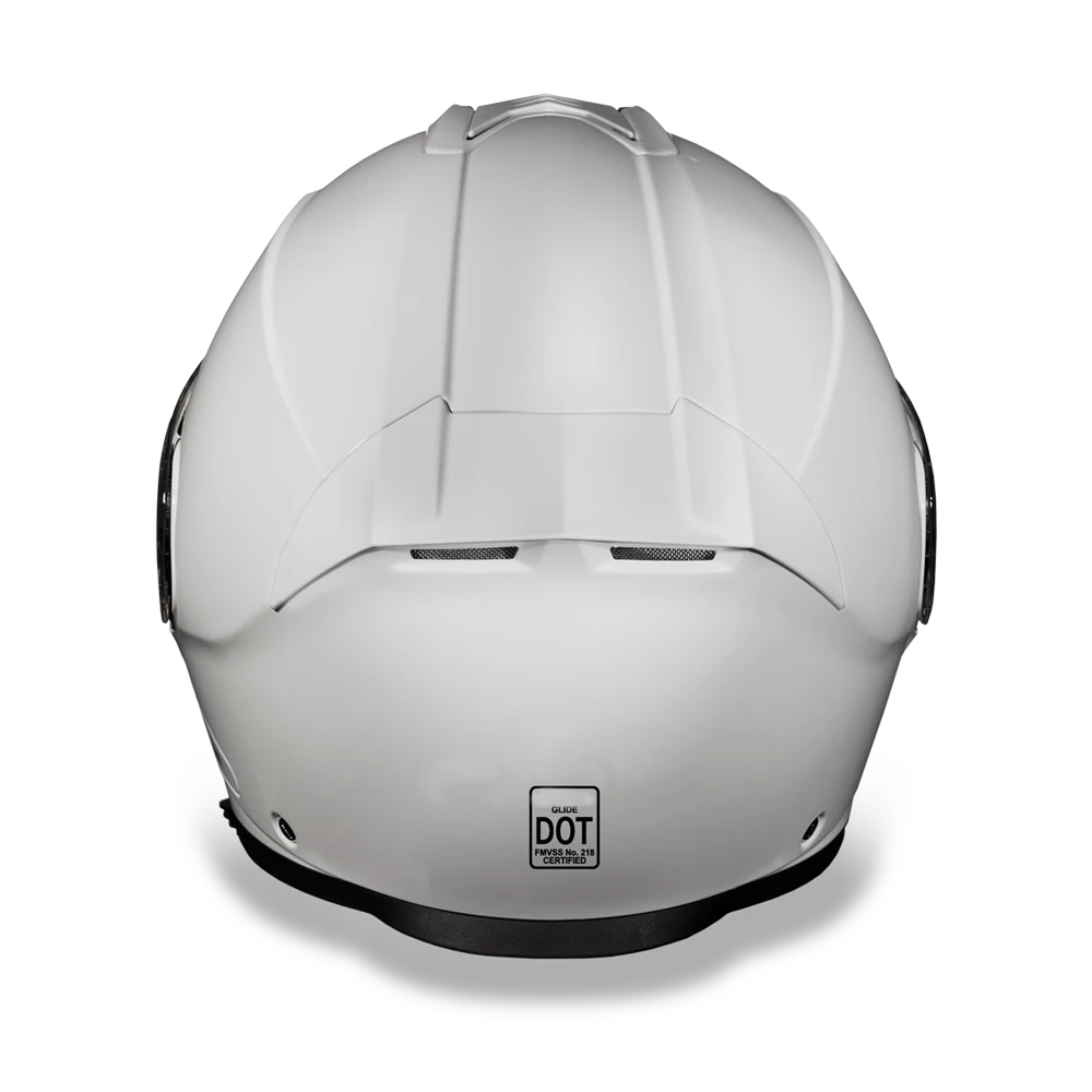 Our D.O.T. Glide Hi-Gloss White Helmet, with Inner Anti-Scratch Retractable Smoke Shield, in a custom Fluorescent Yellow, meets and exceeds D.O.T. FMVSS 218 Standards.