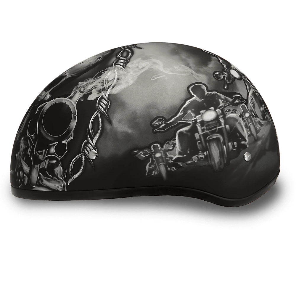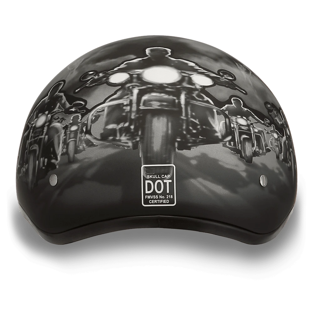 Daytona D.O.T. Motorcycle Skull Cap Half Helmet w/Guns Characteristics: