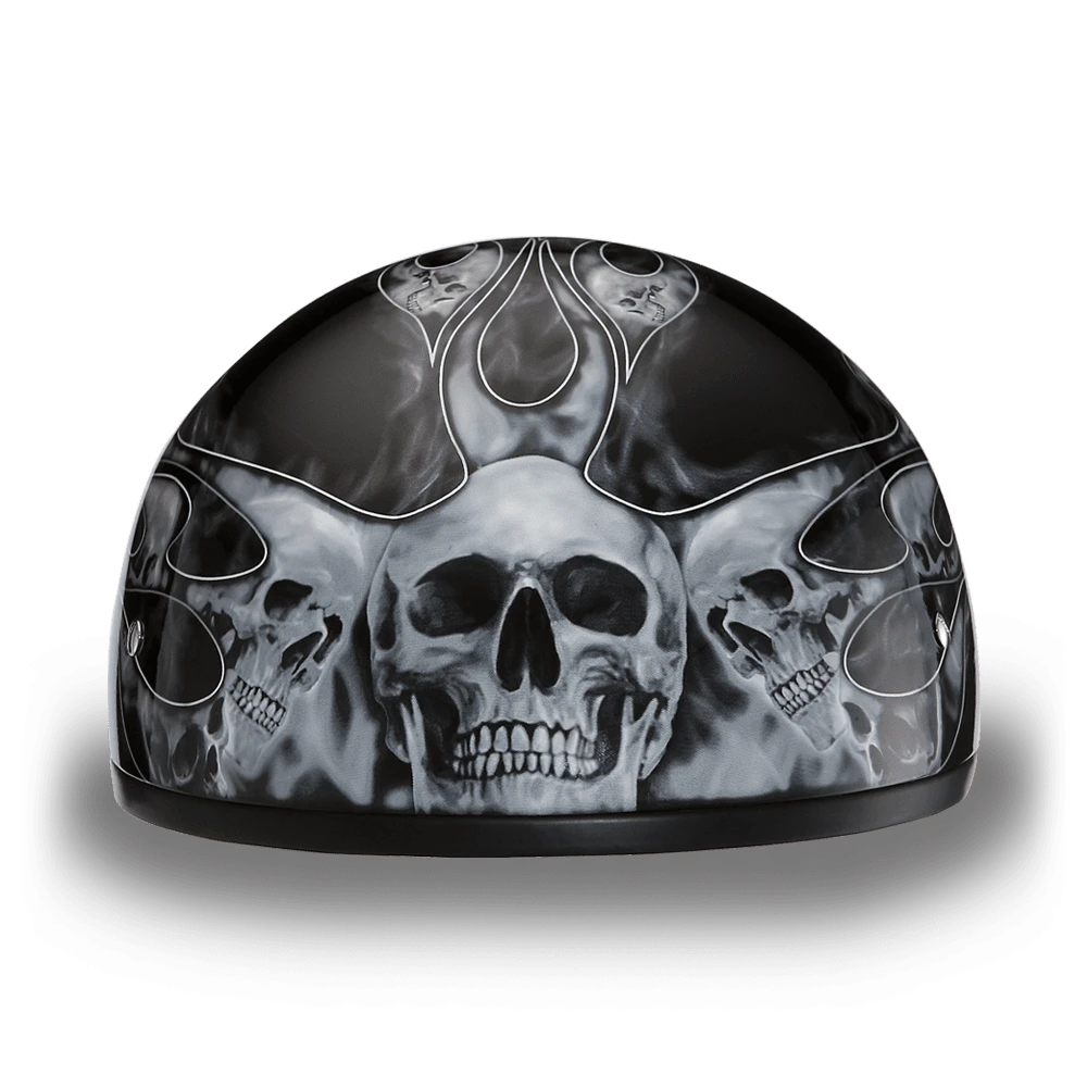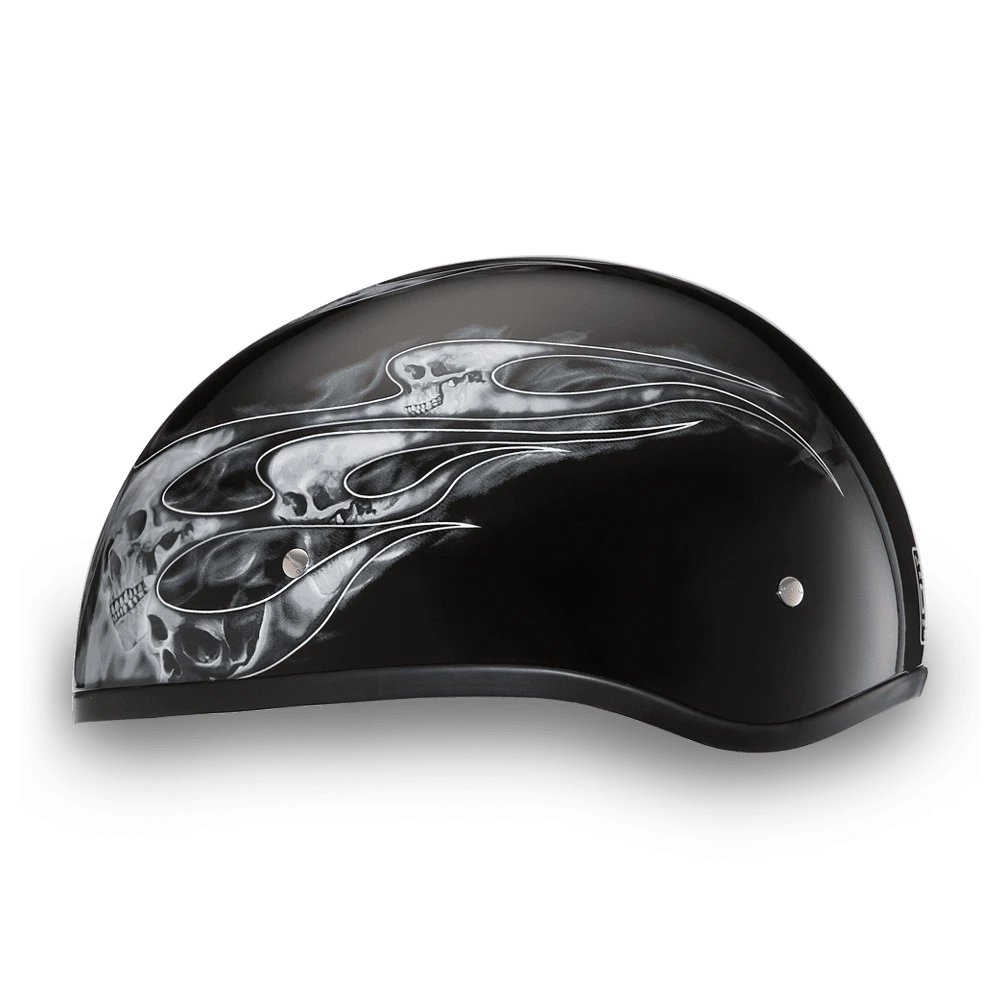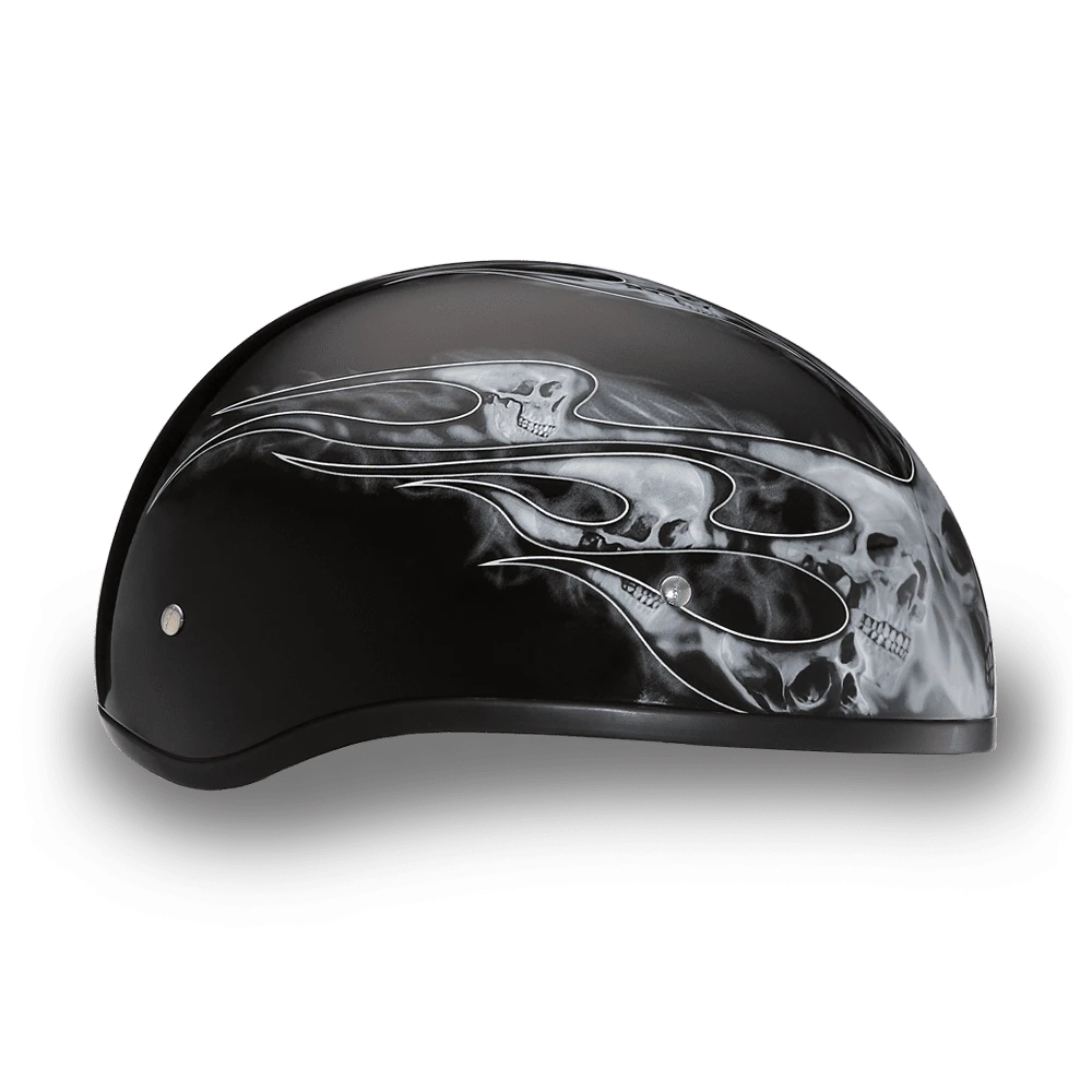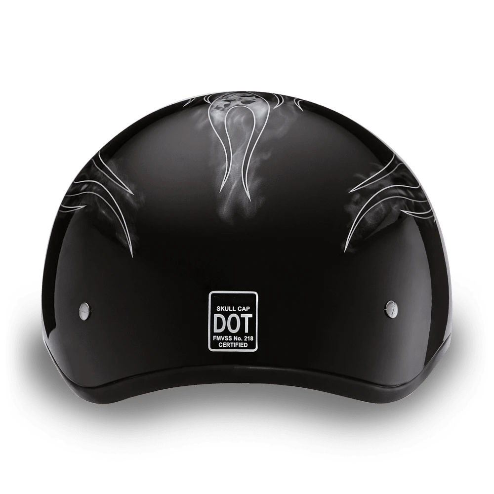Daytona D.O.T. Silver Skull & Flames Skull Cap Half Helmet Characteristics: