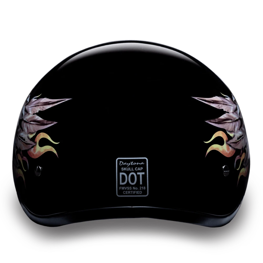 This super cool Daytona D.O.T. Skull Wings Cap Helmet is designed with a colorful skull with flames and wings design, making sure to attract attention everywhere you wear it. What’s best, and most importantly, this helmet meets and exceeds the D.O.T. Safety Standards FMVSS 218, meaning it has undergone the most strict safety tests taken by the Department of Transformation.