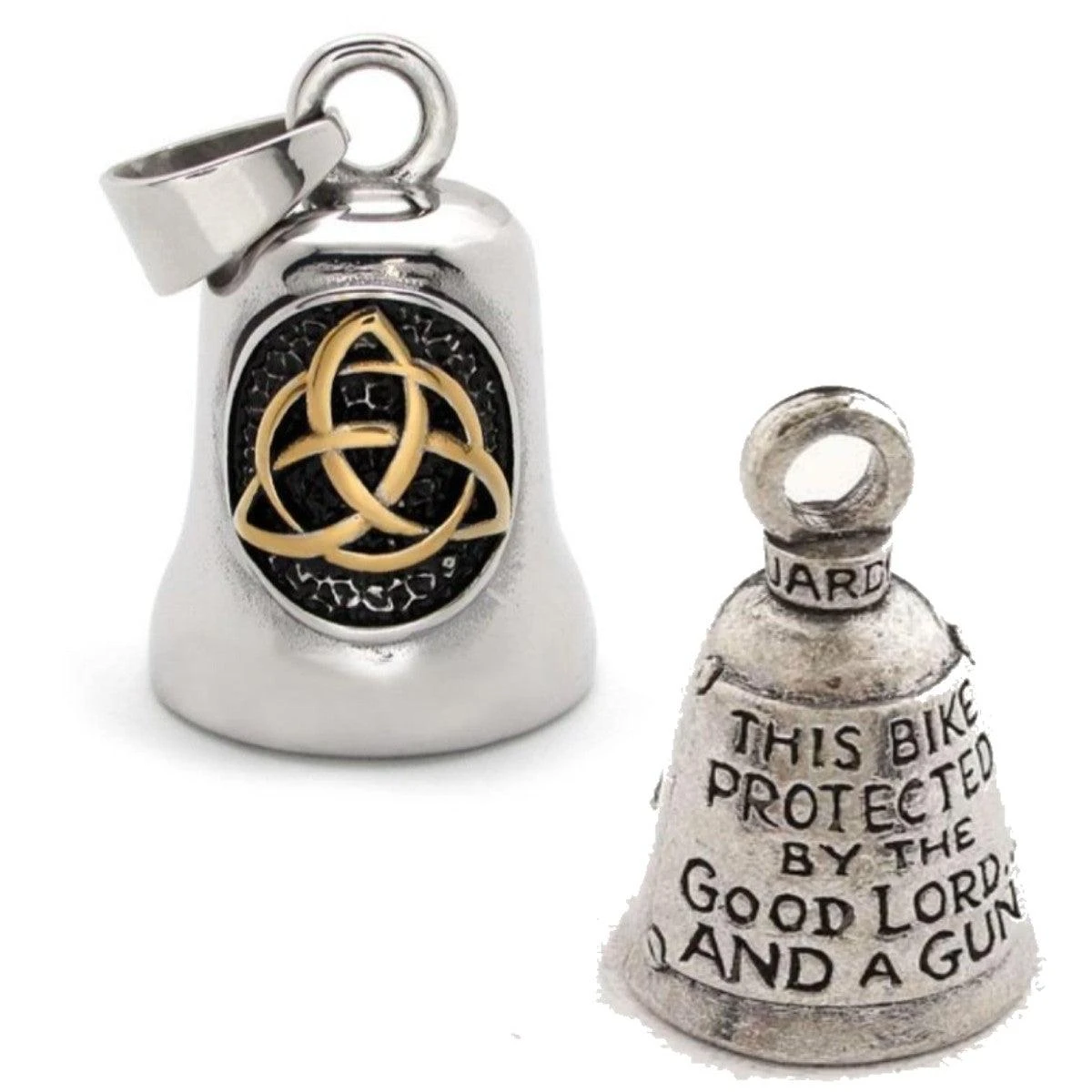 Father & Son Celtic Knot Gremlin Bell with This Bike Protected by the Good Lord Bell Bundle