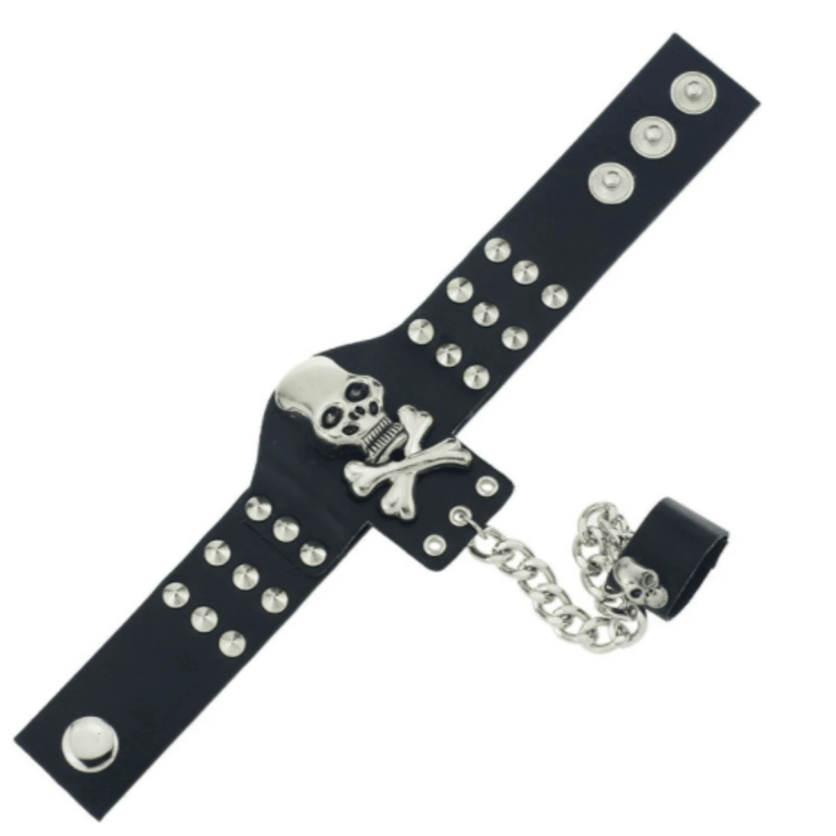 Handmade Leather Skull Bracelet with Ring Characteristics: