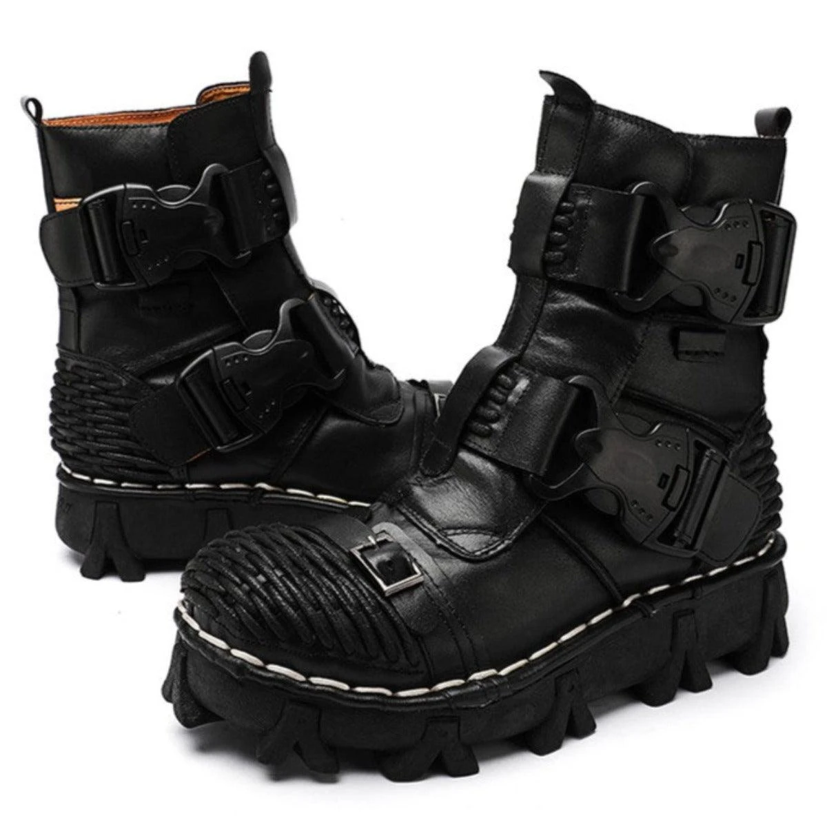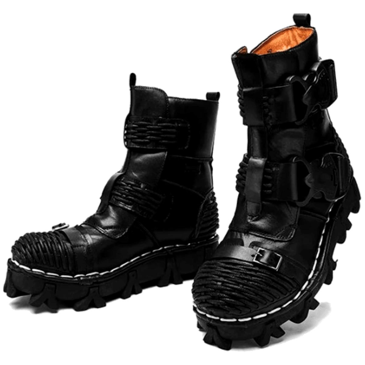 - Unique polymer PVC buckle closure design make these boots one-of-a-kind;