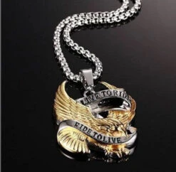 Bikers Live To Ride, Ride To Live Necklace, Eagle Pendant W/ Stainless Steel 20 In Box Chain