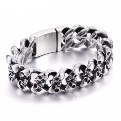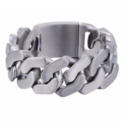 Stainless Steel Heavy Thick Chain Bracelet, Width 1 In, Thickness 0.2 In, Silver