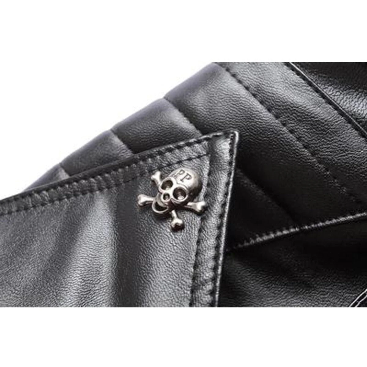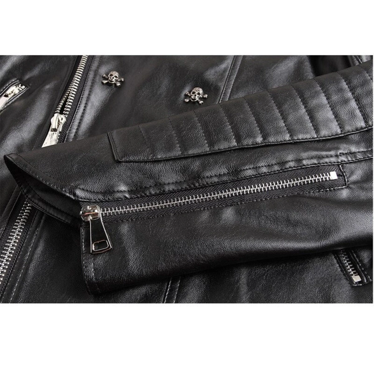 The faux leather biker jacket is an excellent choice for those looking for a versatile jacket that can be worn on a motorcycle or as casual wear. The punk-style men’s leather jacket features a unique skull design that adds a touch of edginess and attitude to your outfit.