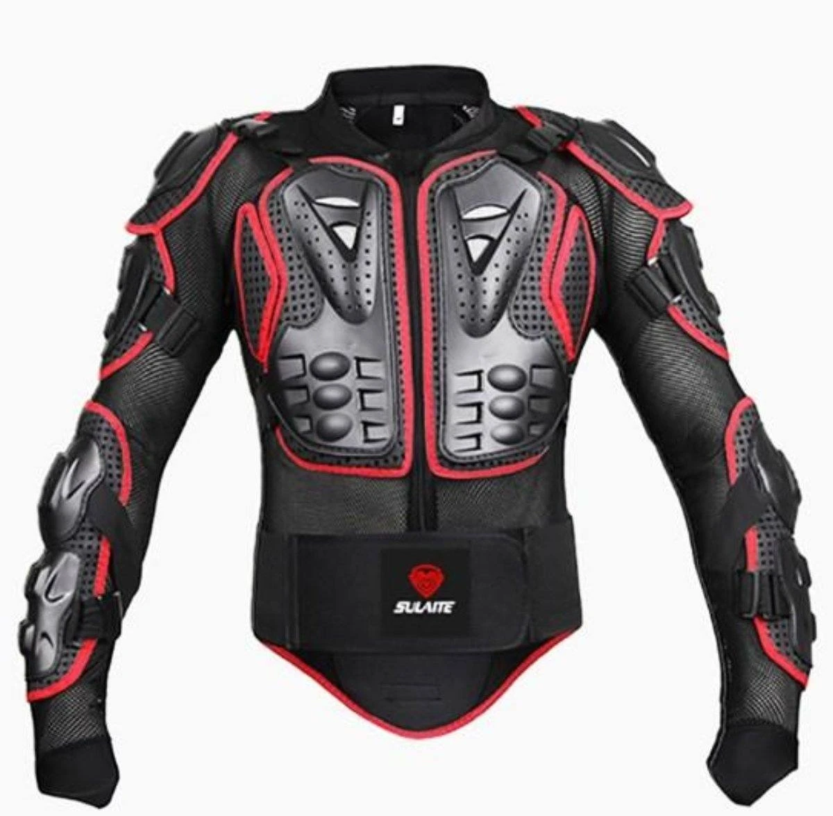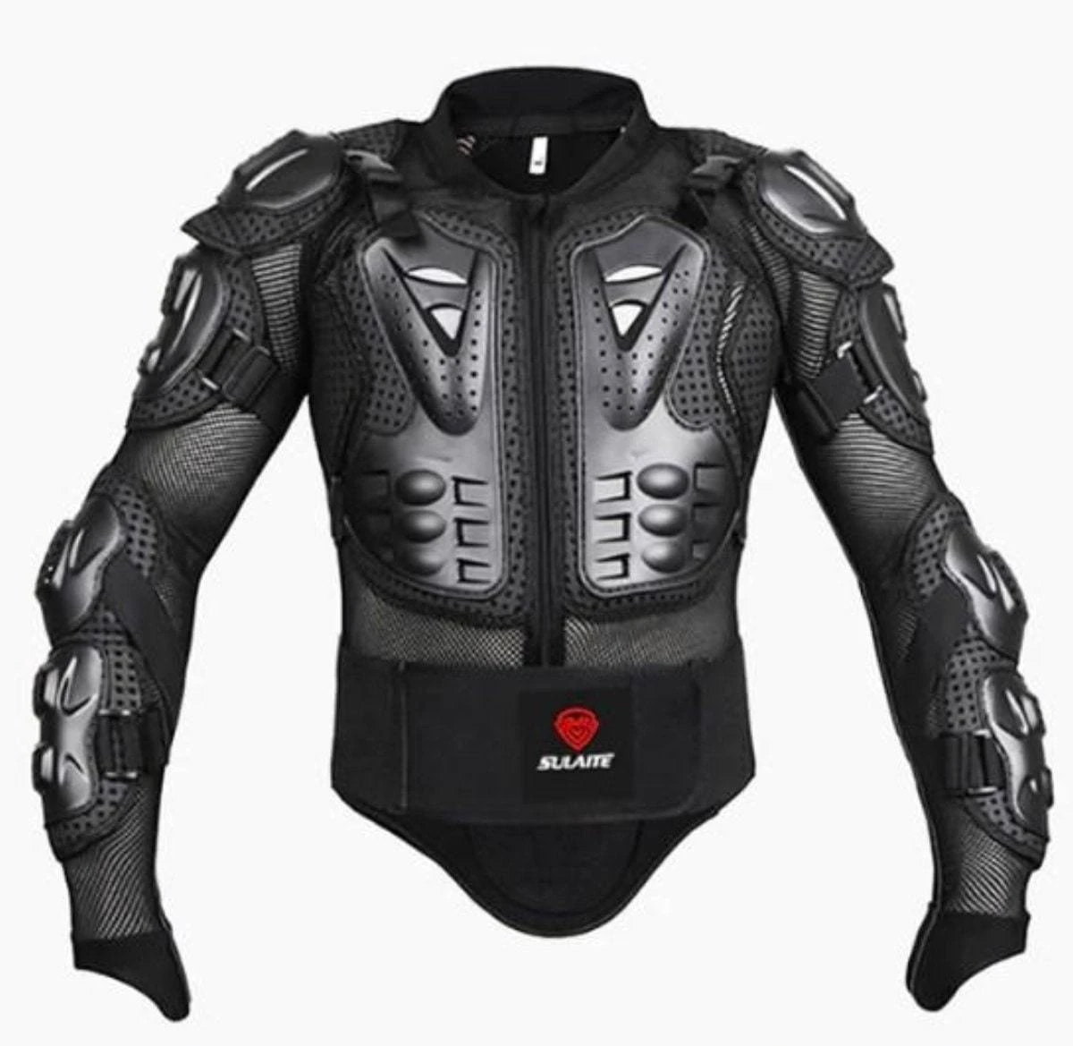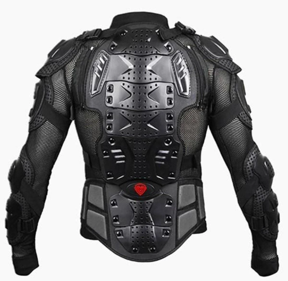 - Extra Protective. The main purpose of this Motorcycle Protective Armor Jacket is to protect your upper body from an unexpected crash or fall. This Armor Jacket has safety padding on the shoulders, spine, and elbows to protect you from joint fractures. It also protects from friction burns, sharp and hard materials.