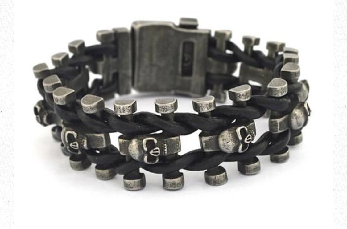 This men’s bracelet has a rough and dark look, and it’s built tough. It’s designed to look like a skeleton with bones and skulls. You will hardly find a design that captures the badass biker look so well.