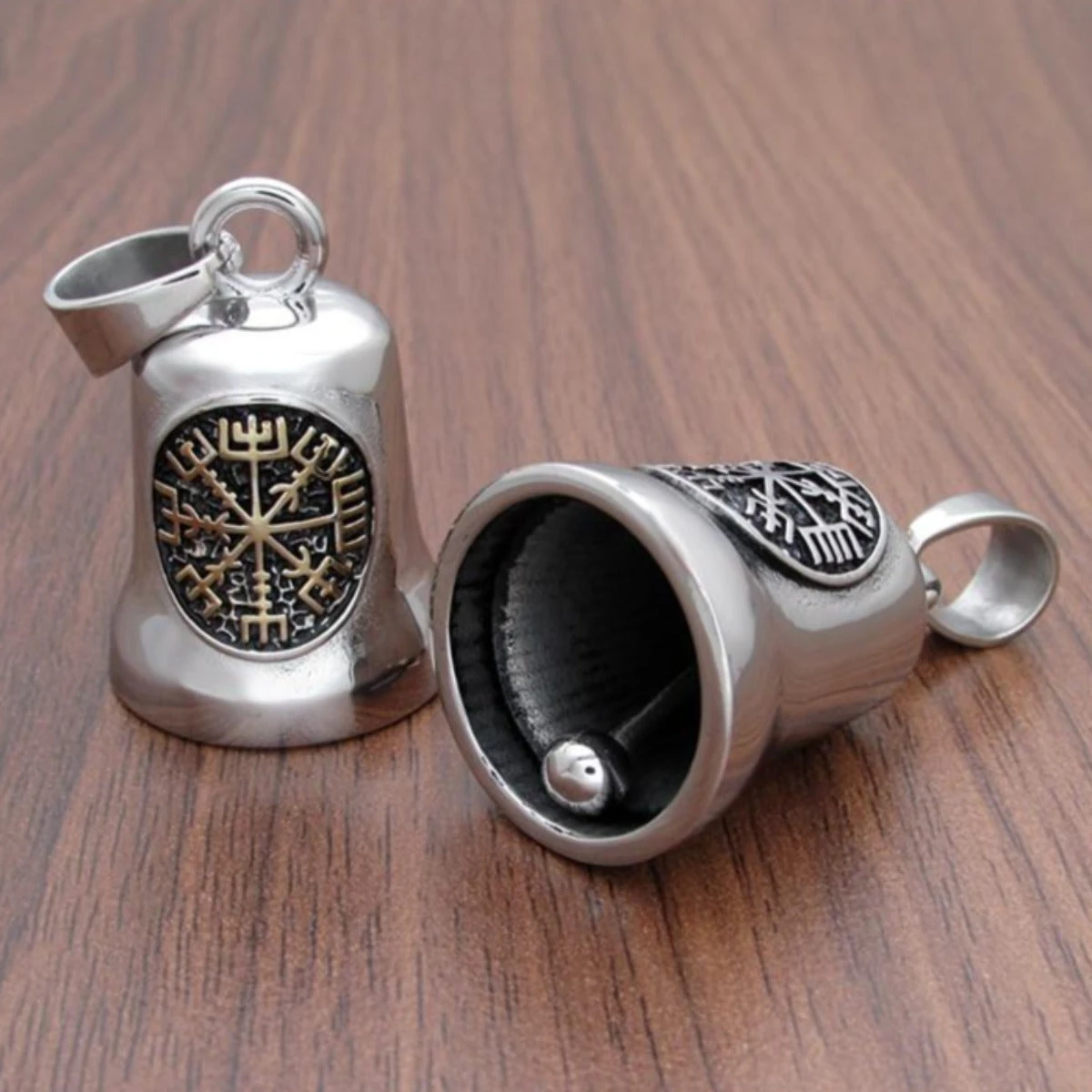 Stainless Steel Viking Compass Design Gremlin Bell Pendant