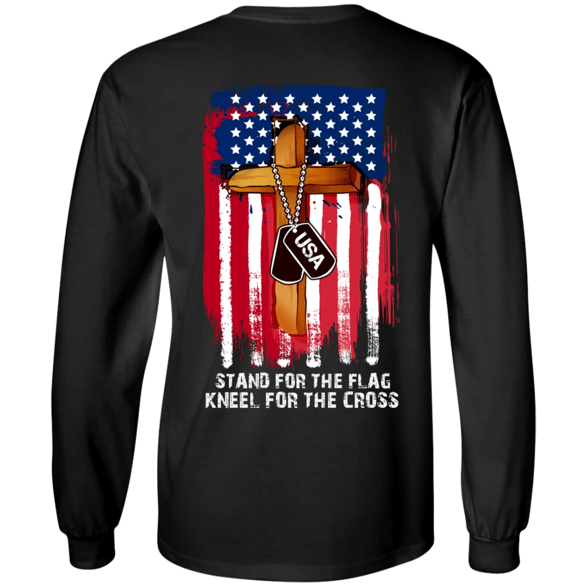 Veterans Day Long Sleeve T-Shirt – Stand For The Flag, Kneel For The Cross, Cotton, Black