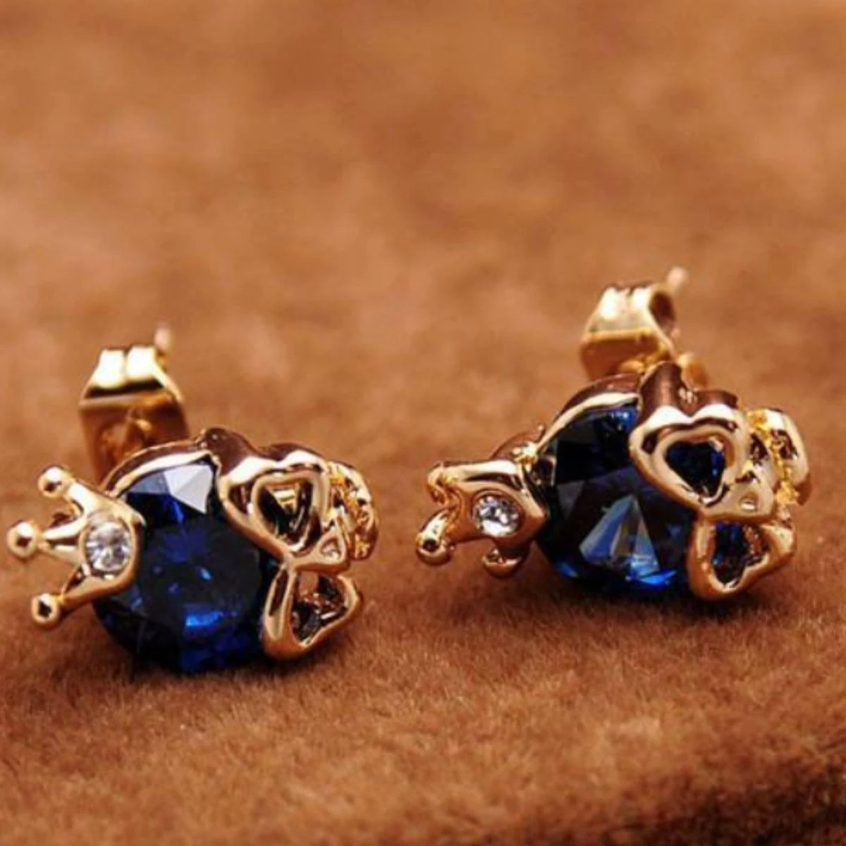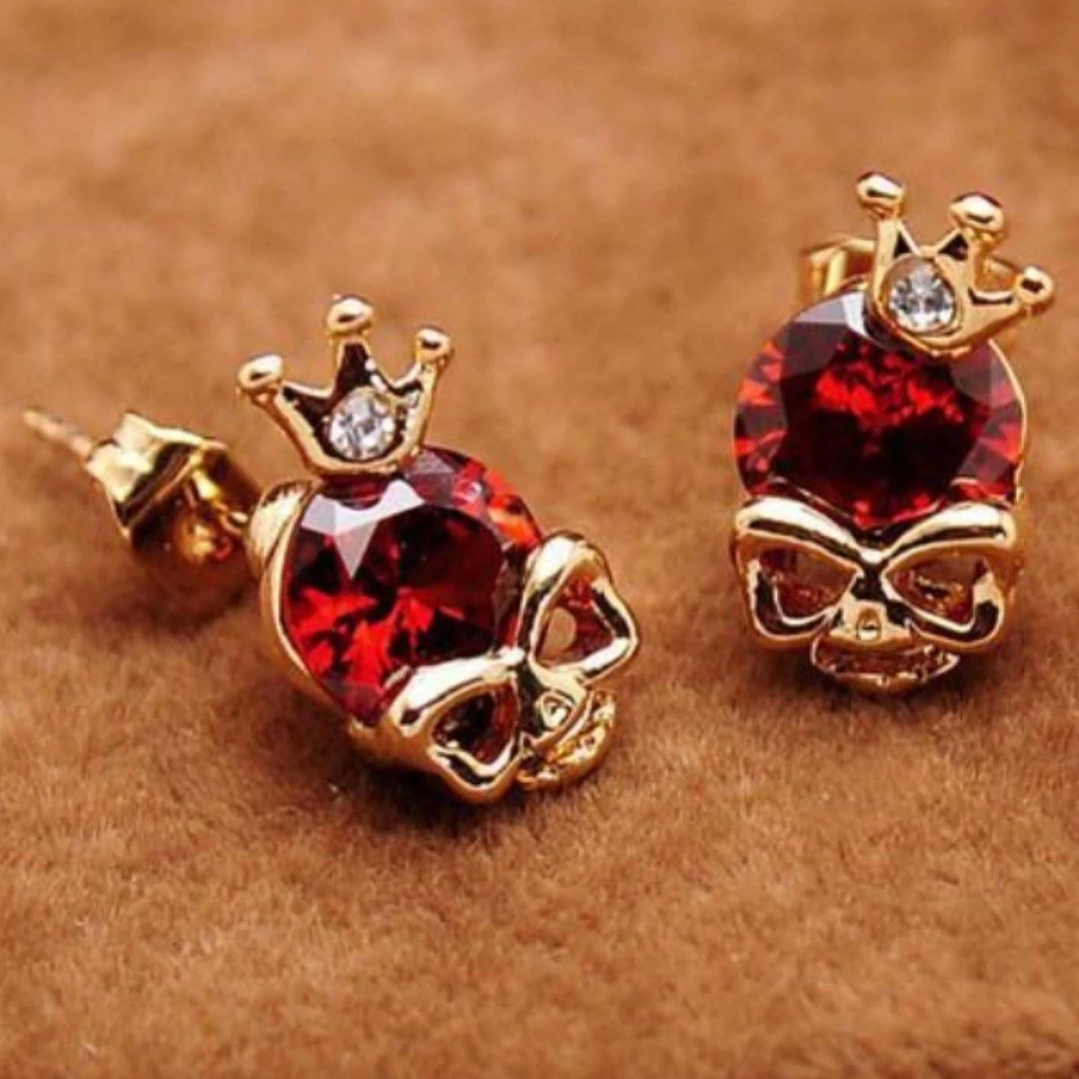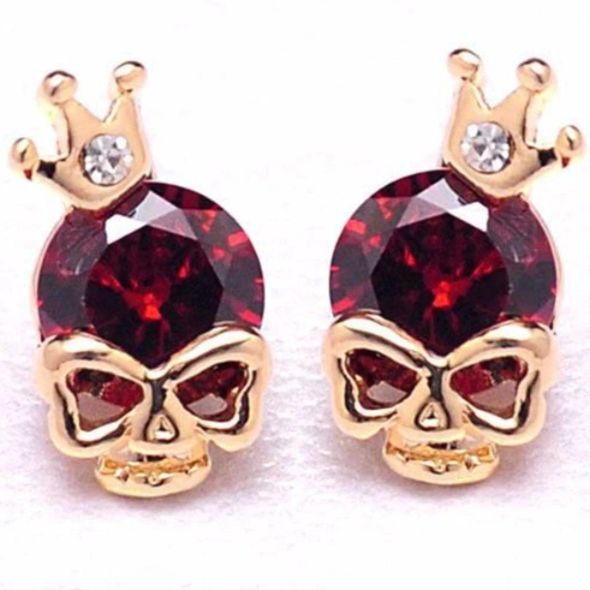 Skulls are fascinating. These beautiful gold plated earrings wear a cubic zircon over heart shaped eyes and nose.